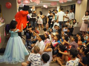 That is why you need a one stop kids party company to settle all that for you. Sure, we do larger events (like for our clients at JP Morgan) but it’s not really our main thing. Our thing is children parties – birthday parties, kindergarten parties, school parties, condo birthday parties…those kinds of things. You know…the works: balloons, decoration, balloon animals, face painting, games, candy floss and so on. This is even for the corporate parties – its children and family related